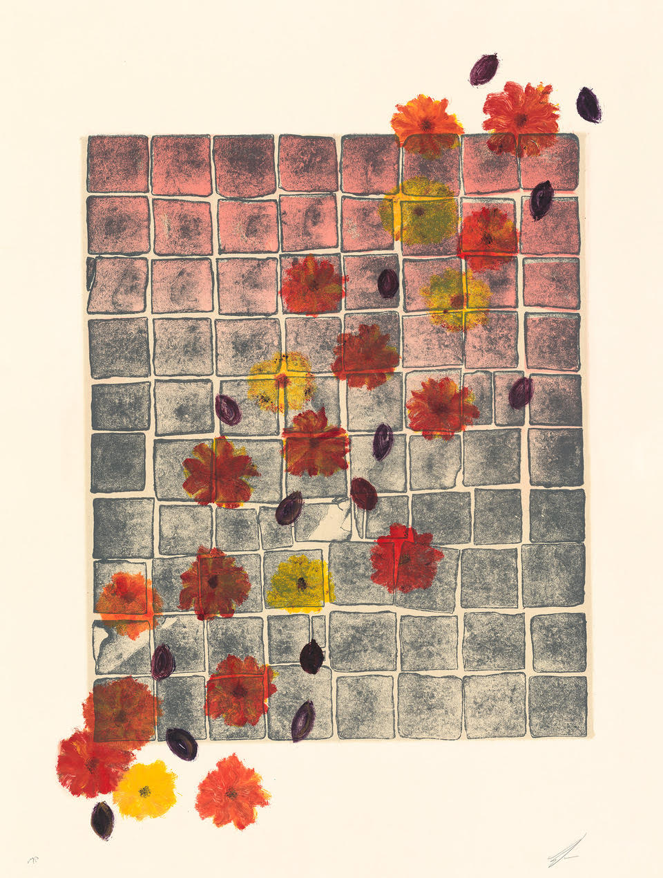 monoprint Lithograph w. Chine Collé