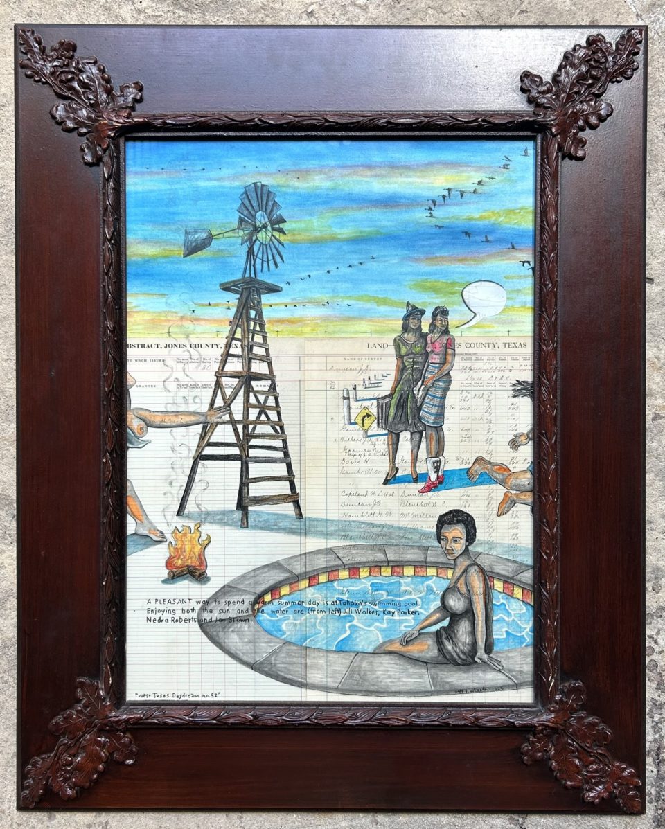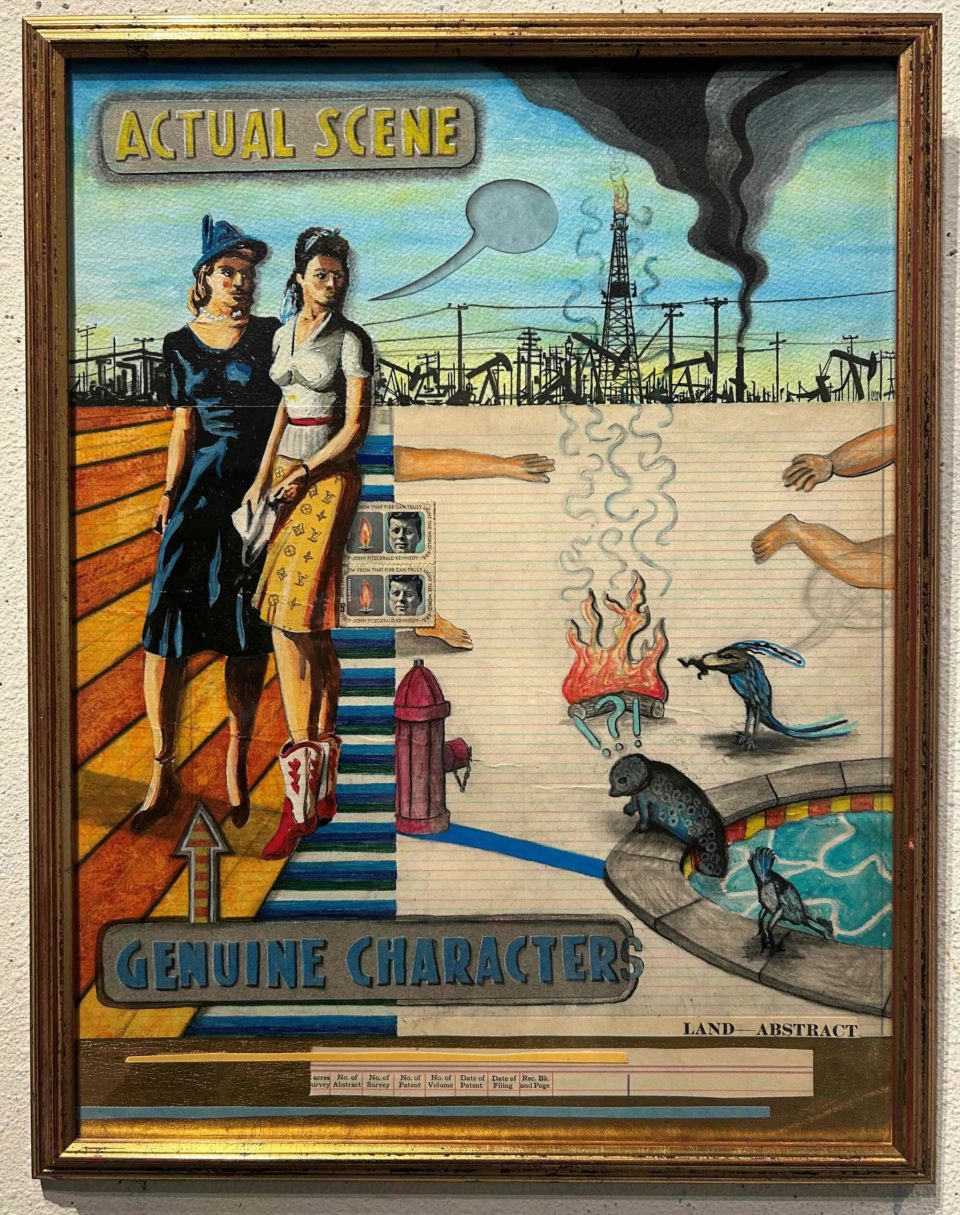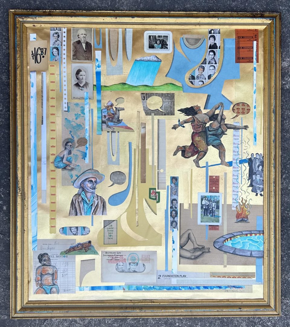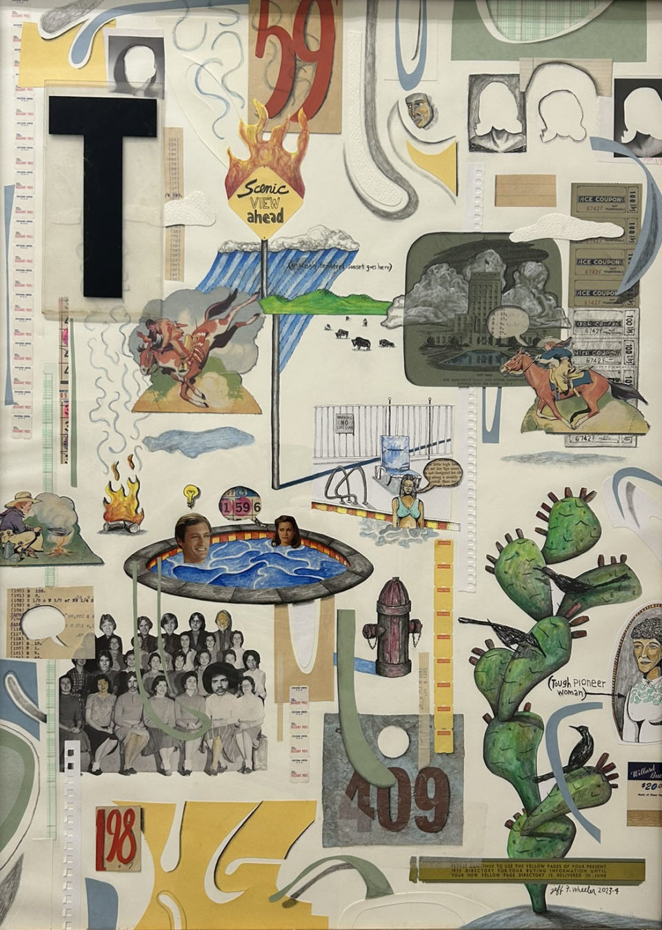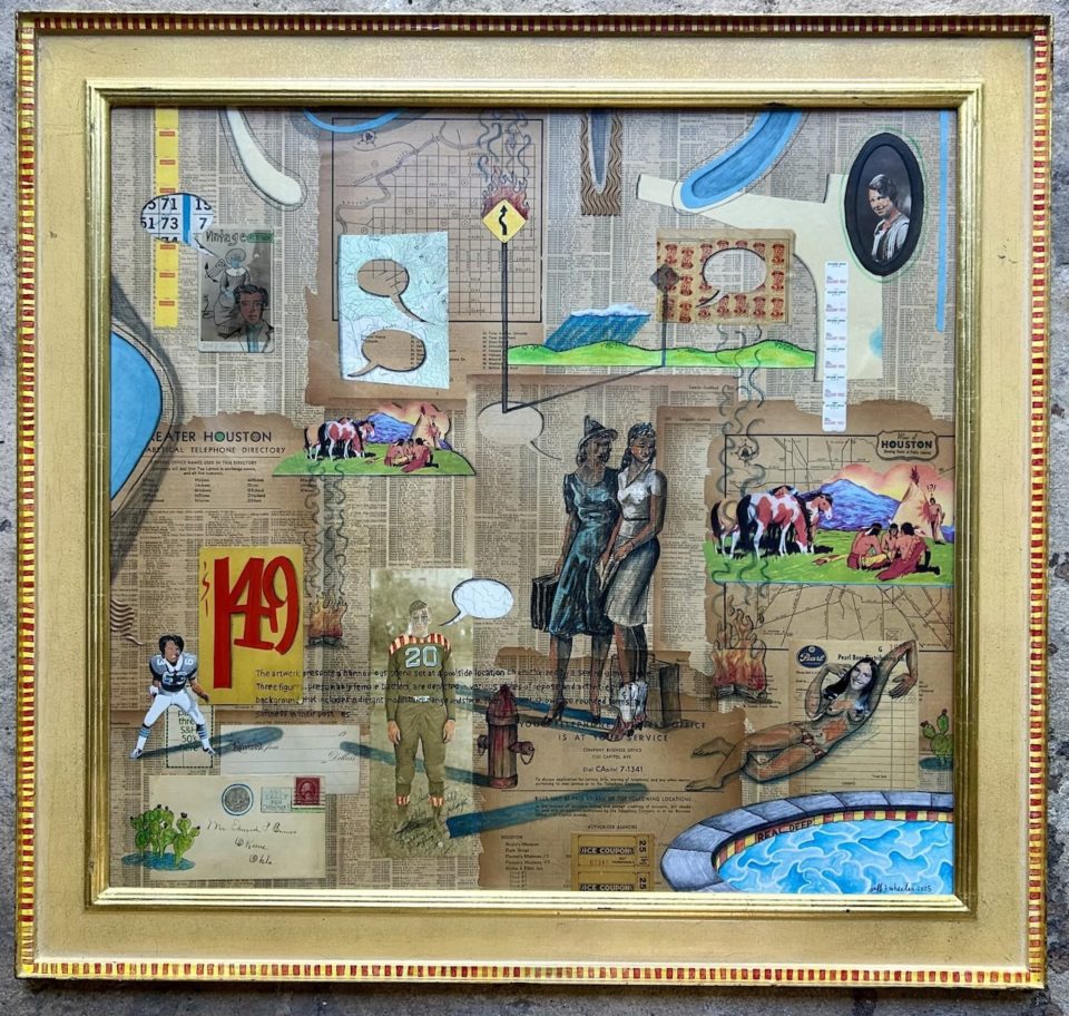 acrylic, charcoal, and collage on 1955 Houston phonebook pages