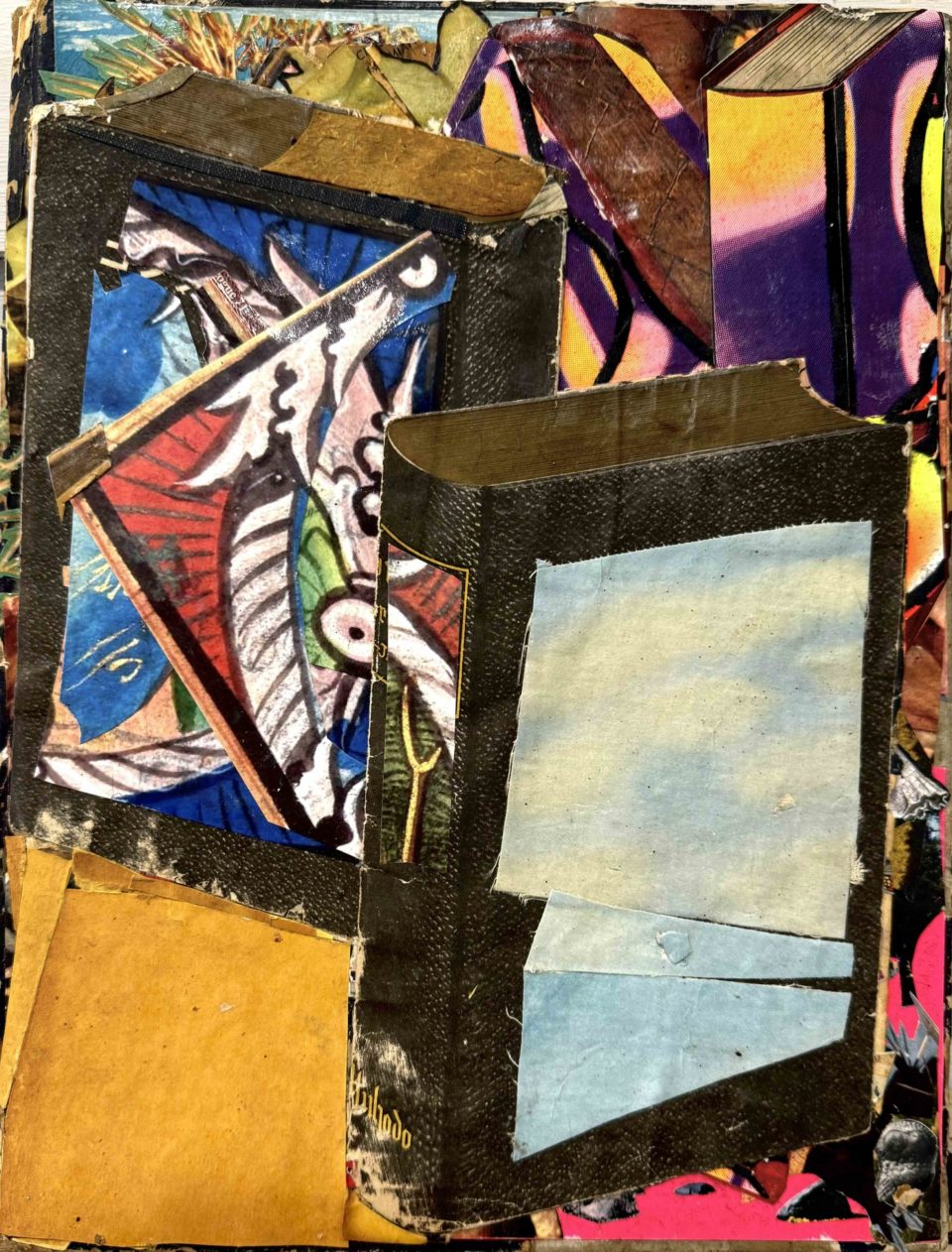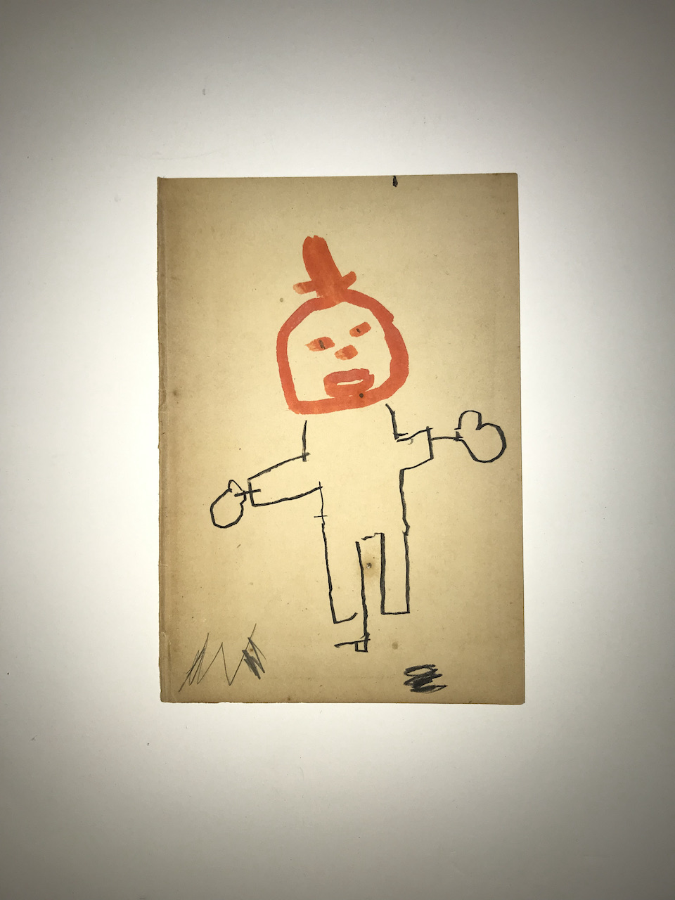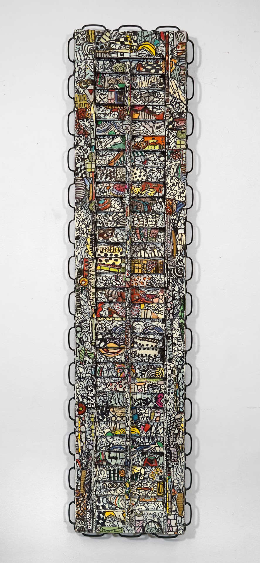 ink, resin stick, color pencil on cardboard (unfolded box)