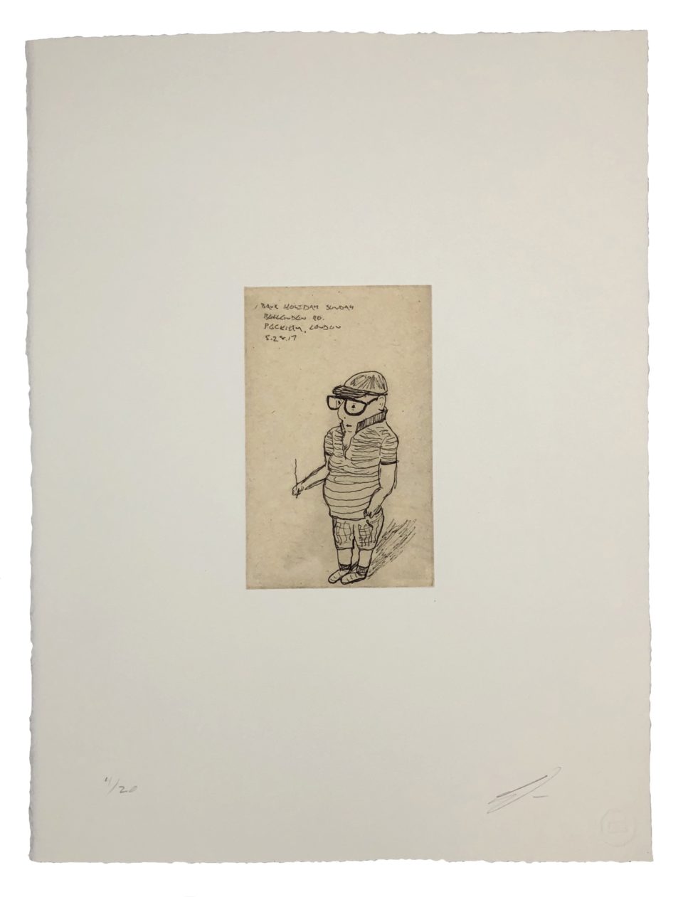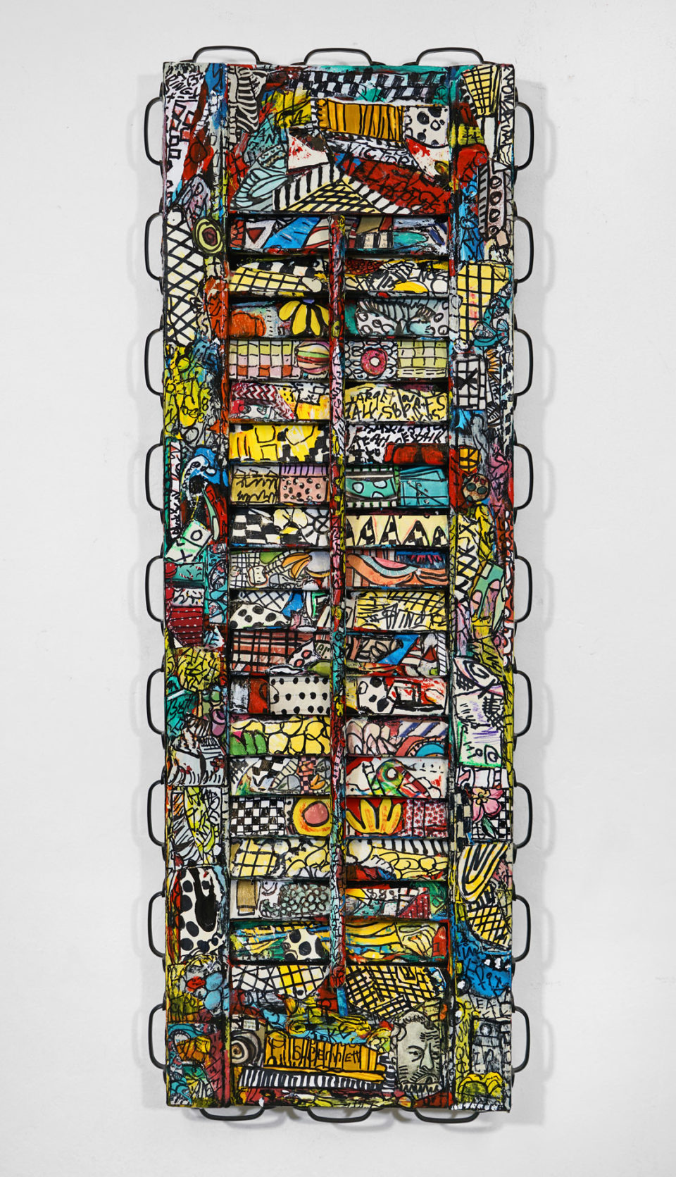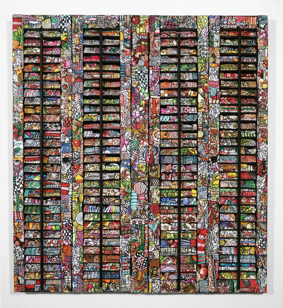 ink, resin stick, color pencil on cardboard (unfolded box)